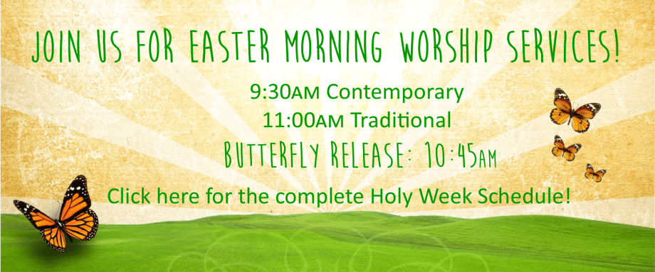 Sunday, April 20-Easter Sunday Worship: 9:30am Contemporary & 11:00am Traditional